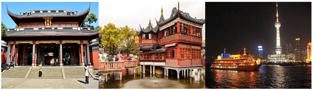 - Xe đưa quý khách đến Thượng Hải - thành phố lớn nhất Trung Quốc với những kiến trúc Phương Tây hiện đại tham quan Quảng Trường Nhân Dân, cầu Nam Phố - kiến trúc của khu mới Phố Đông ngắm các toà nhà cao tầng, bến Thượng Hải, nhìn sang tháp truyền hình Minh Châu Đông Phương - một tháp cao nhất Châu Á đứng thứ 3 trên thế giới, Miếu Thành Hoàng.