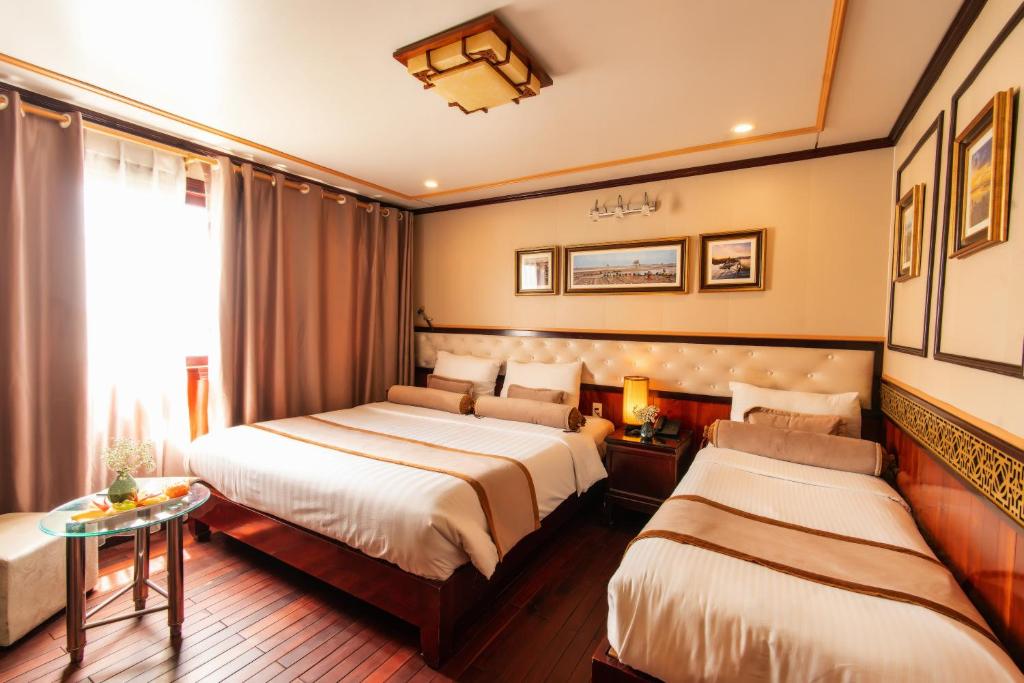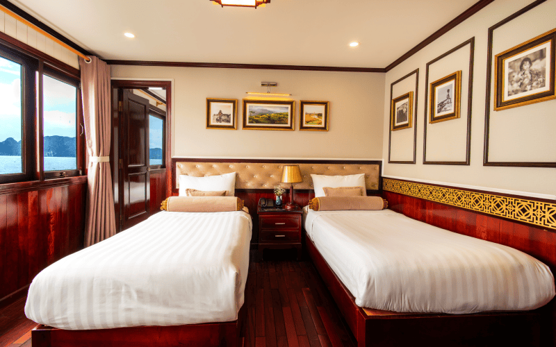12.30: Chào mừng quý khách lên tàu, cùng thưởng thức đồ uống trong khi Quản lý tàu phổ biến những thông tin cần thiết. Làm thủ tục nhận phòng và nghỉ ngơi ít phút.